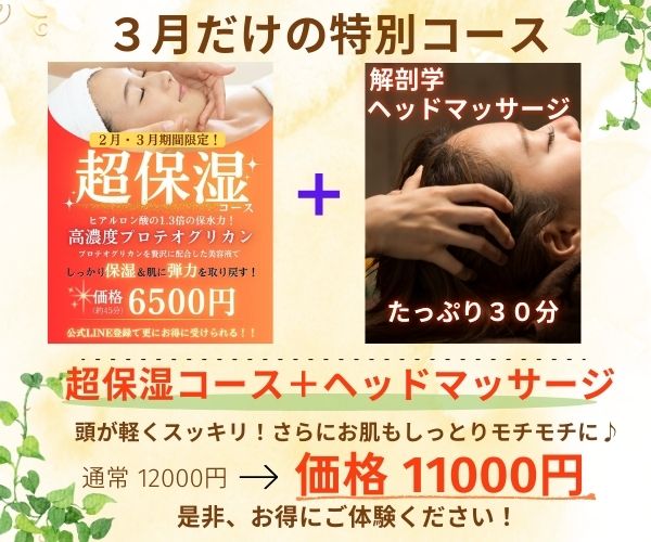 3月は超保湿コースに解剖学ヘッドマッサージを